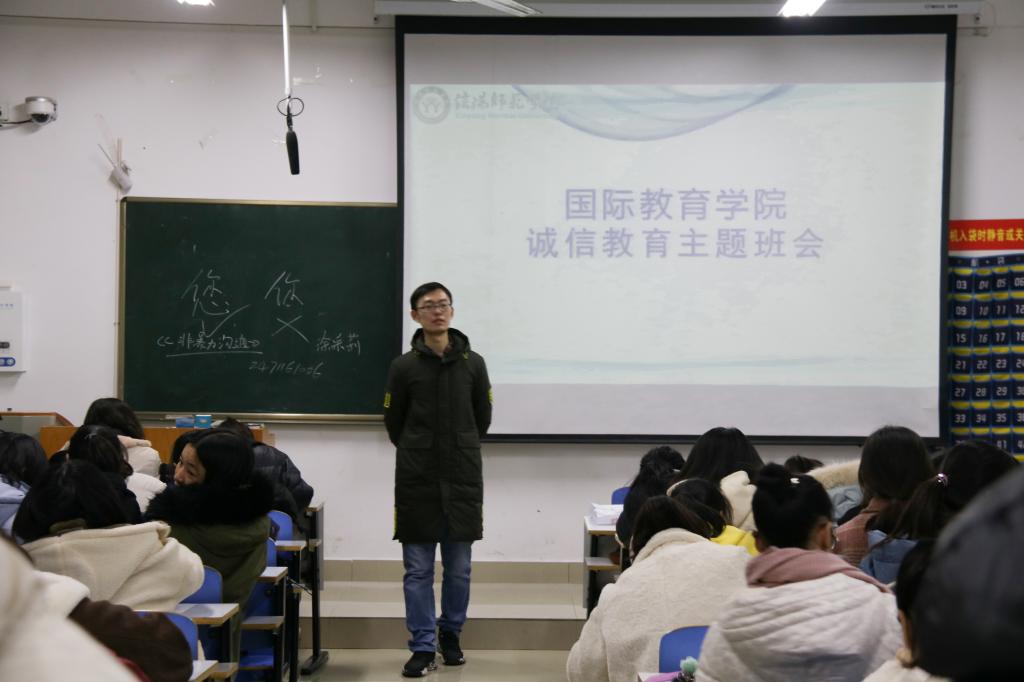此次活动的目的是提高同学们的诚信意识,引导同学们在老员工活中始终贯彻诚信做人做事的原则。主讲人吴浩老师围绕班会主题,将说理和论证结合,逐步深入,向同学说明了诚信的重要性。首先,抛出“诚信在老员工活中有何作用”这一问题,引发了同学们的热烈讨论。在总结整理了诚信的几大作用之后,又播放了宣传诚信的动漫短片,使同学们更加直观地理解了诚信的概念和意义。接下来,班会从学术诚信、奖助学金申请诚信和求职诚信就业三个方面进行了具体阐述,并联系社会现实,通过对当今社会中的热点话题,如“北电硕士翟天临学术造假”事件、“某高校富二代伪造材料申请贫困生助学金”事件和毕业生求职履历造假等现实社会问题的分析,以及对失信者心理和失信原因的深入探究,明确了失信问题的严重性。同时,吴老师还列举了老员工诚实守信方面的正面事例,倡导同学们自觉走诚信道路。最后,全体同学一起演唱了《诚信之歌》。在悠扬的歌声中,本次主题活动圆满结束。