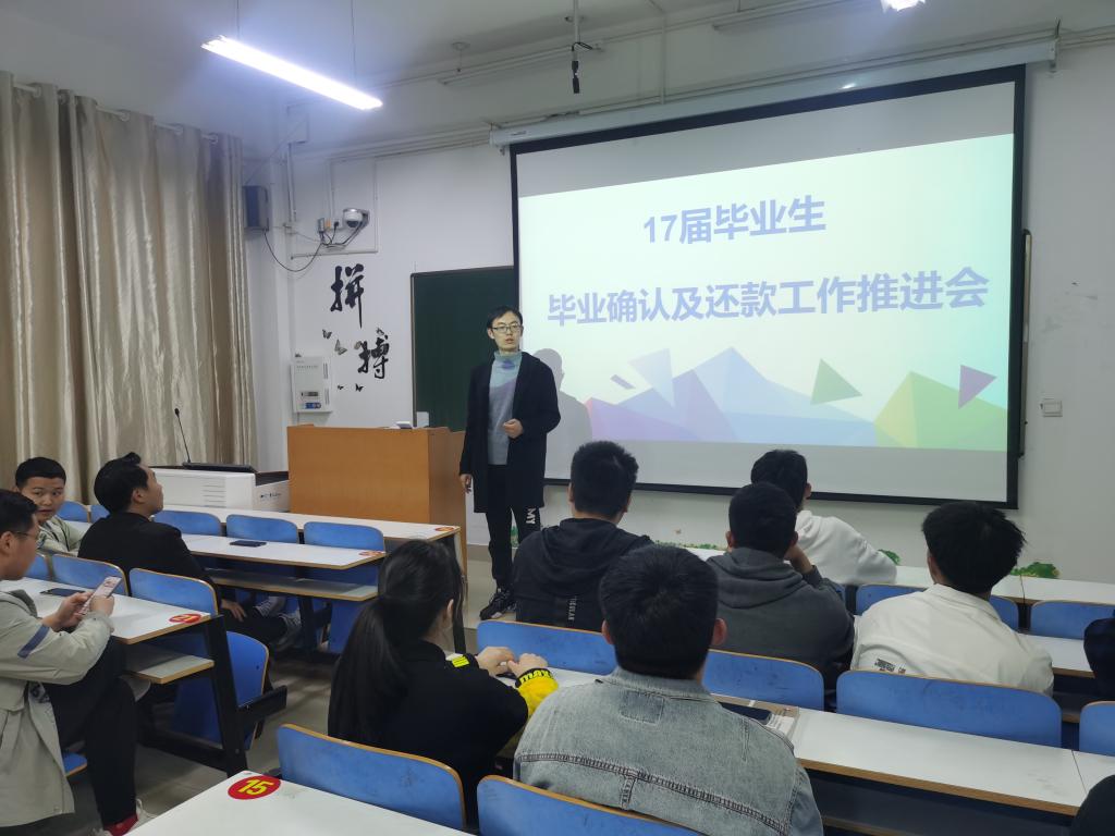 为认真做好贷款毕业生资助工作,确保2021届贷款毕业生还款工作和毕业确认工作顺利开展,5月7日下午,太阳集团tyc151cc于逸夫楼207召开了2021届贷款毕业生毕业确认及诚信还款工作推进会。