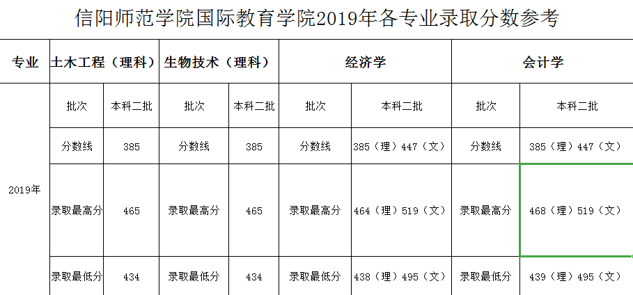 信阳师范公司2019年各专业录取分数参考