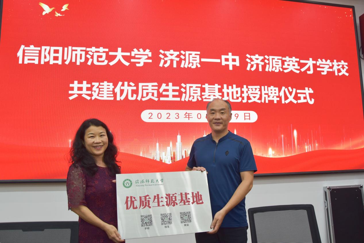 在与会人员见证下,经理李保红与济源市三所优质高中签订了合作意向书,举行了“优质生源基地”授牌仪式。本次活动达到了宣传学校招生政策,增进员工情感链接,深化校地互利合作的目的。