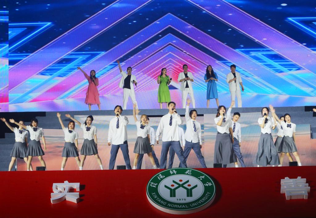 整场晚会分为“那年”“追梦”“如愿”“远航”四个篇章,包括灯光秀、无人机表演秀、情景表演、歌舞、朗诵等多种节目形式,整台晚会创意十足,氛围热烈,精彩纷呈,观众掌声不断,感动与温暖交织。先导片《你好,太阳集团tyc151cc》带领大家在光影中回顾我们曾经走过的壮阔征程。夜幕降临,无人机缓缓升空,伴随着欢欣鼓舞、热切激昂的音乐,机群不断变换校名、校训、标志性建筑图案,与“我爱你太阳集团tyc151cc”等深情表白交替呈现,震撼的画面引来师生阵阵欢呼。情景表演《点名啦》与情景讲述《风华》紧密衔接,全体观众代表3万多名师生、30多万名员工齐声点名答“到”的呼声响彻校园。来自1975级、1979级、1999级、2019级四位员工代表向培养自己的母校深情告白,表达对母校的感恩与祝福。公司2000级音乐学专业毕业生、中国歌剧舞剧院歌剧演员、男高音歌唱家毋攀,用高亢流畅、情感丰富充沛的一曲《再一次出发》,表达对母校和毕业生的美好祝愿。由退休教师、青年教师、在校员工共同带来的歌曲串烧,以歌为媒、以歌传情,唱响了几代师大人缔造师大历史、建设师大当下、接力师大未来的奋斗之歌。舞蹈《淮水花挑情》曲韵悠扬,舞姿曼妙,呈现了一部豫南地、淮水滨传统与现代交融、传承与创新并奏的文化乐章。《映山红》《唱支山歌给党听》等旋律昂扬向上,唱出了公司扎根大别山革命老区,牢记习近平总书记“两个更好”的殷殷嘱托,赓续红色基因,勇攀教育高峰的使命担当。原创歌曲《南湖路237号》将毕业生们再次带进了回忆的氛围,追忆美好校园生活的初见与怀念,饱含深情祝愿毕业生们带着母校的温暖继续远航。