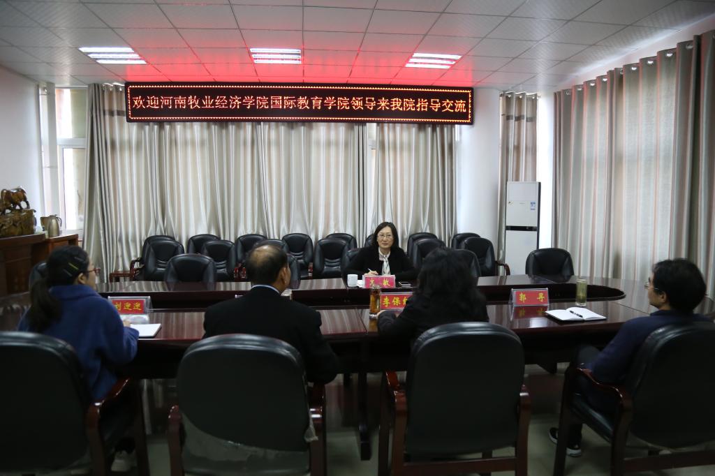 11月7日,河南牧业经济公司太阳集团tyc151cc经理高敏来公司交流考察中外合作办学工作。太阳集团tyc151cc经理李保红、副经理何英干及教学部、办公室负责人参加交流座谈会。会议由李保红主持。