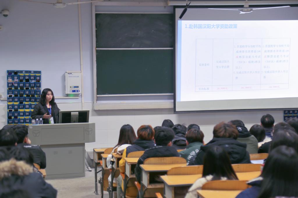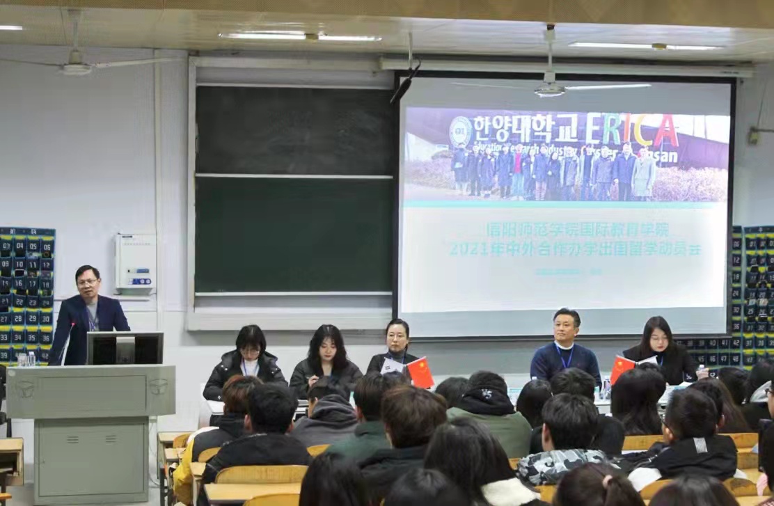11月22日,2021年太阳集团tyc151cc中外合作办学出国留学动员会在教六楼402教室成功召开。副经理姚光金,外籍韩语教师白炅翰(박경한)、朴信爱(박신애),相关部门负责同志和2020级土木工程专业、生物技术专业全体员工参加动员会。会议由出国留学指导中心主任陈璐主持。