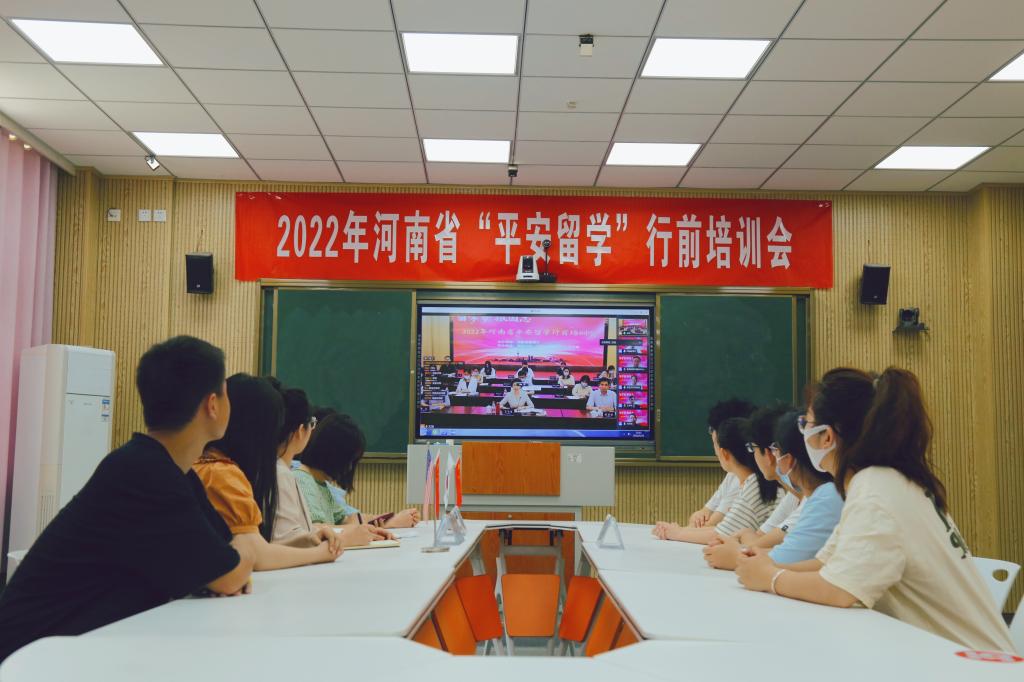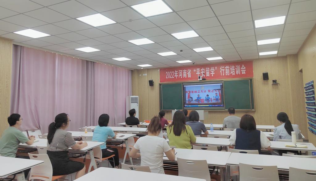 2022年5月31日、6月30日,公司分别在信阳师范公司分会场参加2022年河南省“平安留学”出国留学培训会。公司党委书记李舟、经理李保红、副书记付春锋、副经理姚光金和部分教职员工、2022年拟出国留学员工参加了培训会。