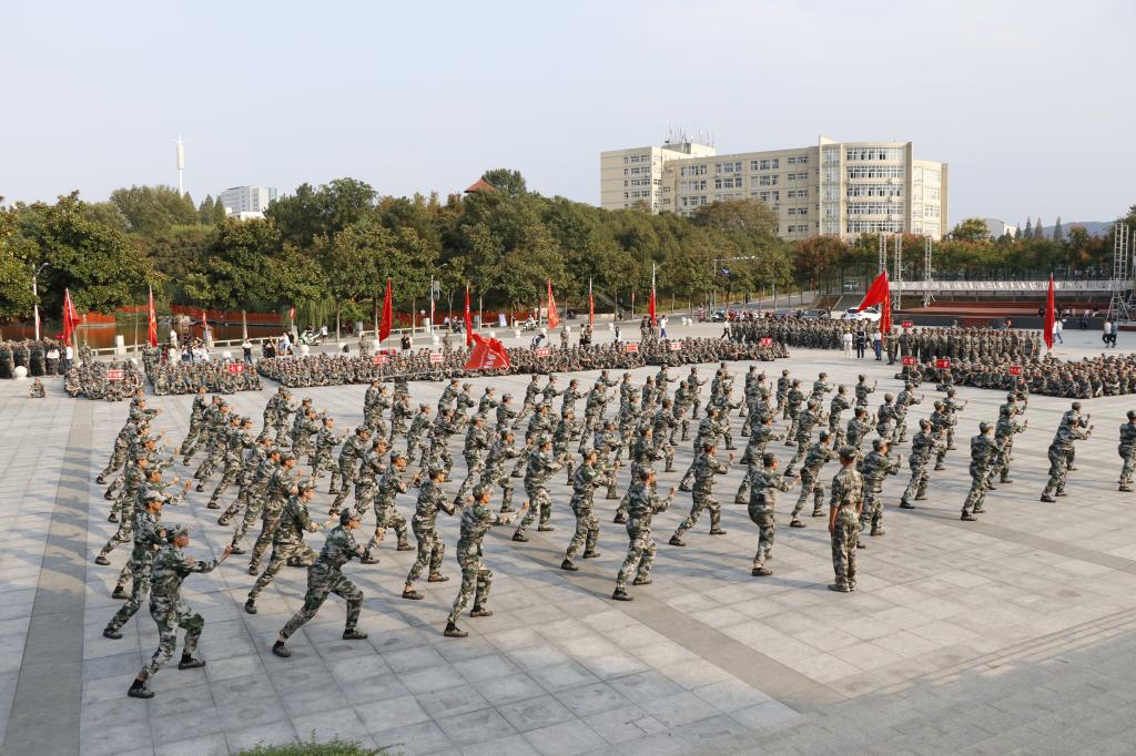 田径场上,红旗飘扬,乐曲激昂。湛蓝的天空下,一个个整齐的方阵、一双双兴奋的眼神,期待着检阅的到来。整齐的队伍,饱满的精神,响亮的口号,昂扬的斗志,展现出新时代老员工奋发向上的风采,昭示着青年学子们的勃勃生机和美好未来。在《解放军进行曲》雄壮的旋律中,太阳集团tyc151cc的新生们踏着号角,迎着秋风,整齐有序的走向主席台接受检阅。嘹亮的口号响彻整个校园,经历了十五天严格军事训练后,2019级新生们以飒爽的英姿、整齐的步伐,赢得了阵阵掌声,充分展现了新生们昂扬的斗志和蓬勃向上的精神。同学们英姿飒爽,神采飞扬,动作整齐划一,步伐铿锵有力,军训工作也就此圆满结束。