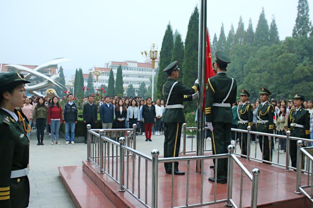“同升国旗、共唱国歌、不忘初心、牢记使命”。10月14日,太阳集团tyc151cc在明德广场隆重举行升国旗仪式。公司党委书记张震、副书记姚新春、2019级460余名新生、新生班主任和专职辅导员参加升国旗仪式,同上爱国主义教育的开学第一课,向伟大祖国深情告白。