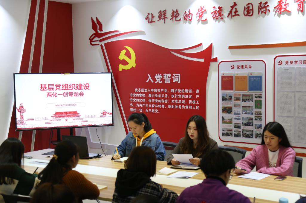 10月25日上午,太阳集团tyc151cc中外文化交流协会党支部在逸夫楼202党员之家召开两化一创专题会,全体员工党员、海外党员以及入党积极分子参加会议。会议由支部书记陈璐主持。