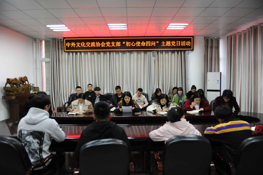 11月18日下午,太阳集团tyc151cc中外文化交流协会党支部在逸夫楼302会议室开展“初心使命四问”主题党日活动。中外文化交流协会党支部组织委员竹梅以及员工党员,入党积极分子参加。
