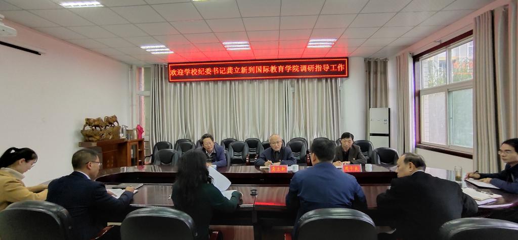 龚立新肯定了国际教育公司在扩大学校开放办学,促进国际交流,推进国际化人才培养等方面取得的成绩。他强调,在深入推进“不忘初心、牢记使命”主题教育中,公司要通过对表对标找差距,全面检视反思,深入调查和整改落实等工作切实破解制约瓶颈,保障事业健康持续发展,为学校高水平师范大学建设提供重要支撑。结合党风廉政建设,他提出十个方面要求:一是学思结合,要加强政治理论知识、业务知识、党史国史综合知识等方面学习,以理论滋养初心,在学思践悟中不断促进事业发展;二是担当尽责,要勇于担当、善于担当、乐于担当,要切实提升敢于担当的精神、善于担当能力和主动担当的境界;三是守正创新,要不断解放思想,以更加开放的办学视野,进一步引进优质教育资源,创新办学模式,加强员工国际交流,提升国际化人才培养水平;四是统揽全局,谋一隅要先谋全局,要树立全局观念,将中外合作办学工作纳入学校整体战略,在健康持续发展中提升服务学校中心工作能力;五是依法行政,要依法办学,加强制度建设,要做制度执行的表率,带动广大师生自觉尊崇制度、严格执行制度、坚决维护制度。六是心系群众,要深入群众,主动关心群众,不断增强教职工归属感、荣誉感和认同感,充分激发教职工干事创业热情;七是狠抓落实,要保持定力抓落实,精准精细抓落实,强化统筹抓落实,坚决把既定部署落实到位,真正把每个细节落实到位;八是团结协作,团结就是战斗力,要着力建设坚强有力的领导班子,形成整体合力,发挥整体功能,促进事业又好又快发展;九是狠抓队伍建设,要注重思想建设、能力建设,努力造就一支热爱中外合作办学事业、精通外事业务的职业型、专家型干部队伍。十是廉洁自律,党风廉政建设永远在路上,要提高思想认识,牢树红线意识、底线意识和规矩意识,坚守初心使命,通过主题教育的高质量开展积极营造良好的事业发展环境。