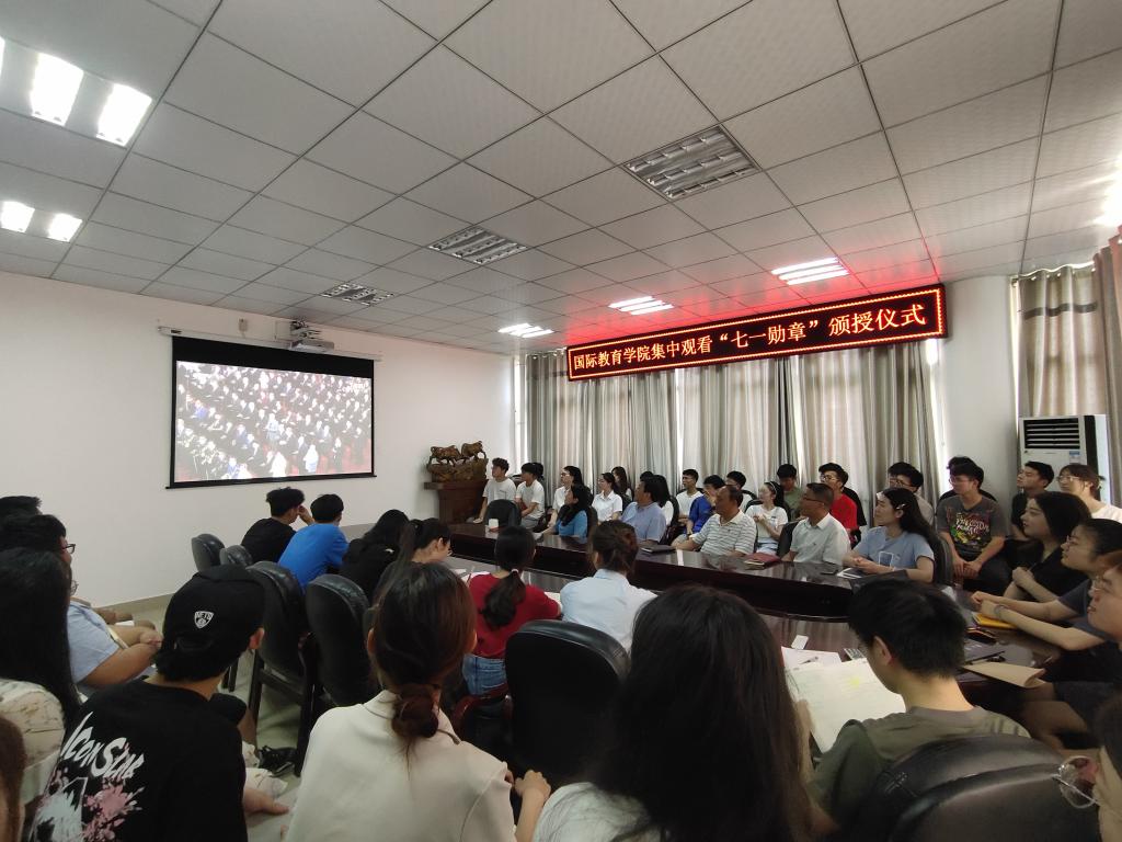 6月29日上午10时,“七一勋章”颁授仪式在人民大会堂隆重举行。太阳集团tyc151cc组织师生代表在逸夫楼302会议室集中观看“七一勋章”颁授仪式直播。
