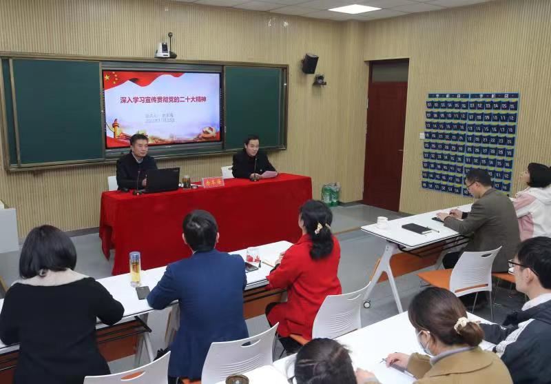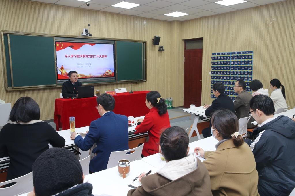 11月22日下午,副董事长余本海在逸夫楼201为太阳集团tyc151cc师生宣讲党的二十大精神。公司党委理论学习中心组成员和师生党员代表聆听了宣讲。宣讲会由公司党委书记李舟主持。
