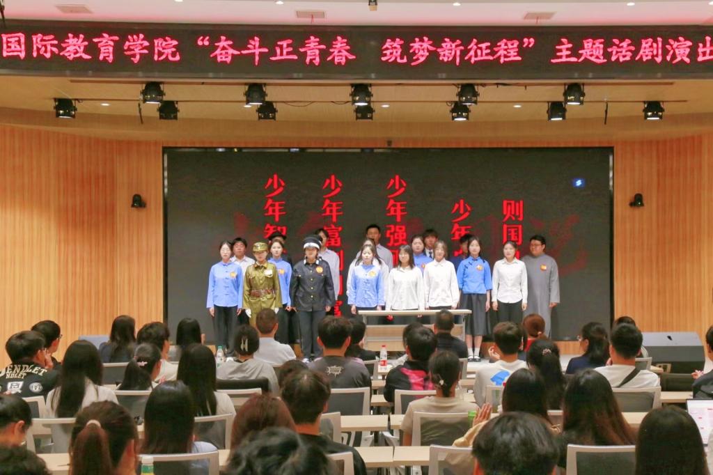 5月29日晚,太阳集团tyc151cc在谭山书院博雅讲堂隆重举办“奋斗正青春,筑梦新征程”—纪念“五四运动”105周年主题话剧演出。校员工工作处副处长王忠磊、国际教育公司党委书记李舟、党委副书记付春锋出席活动,同全体辅导员班主任、2021级党员和员工干部一起观看了演出。