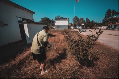 在此次的校园环境整理和消毒工作中,队员们自己准备好了割草机和肩背消毒喷雾器等工具,顶着高温展开了学校的消毒工作,既做好了校园环境整理和防疫消毒工作,又保障了孩子们未来的学习环境,共建良好的社会环境。(摄影/周勇)