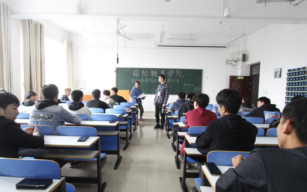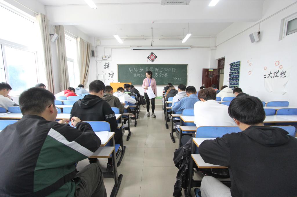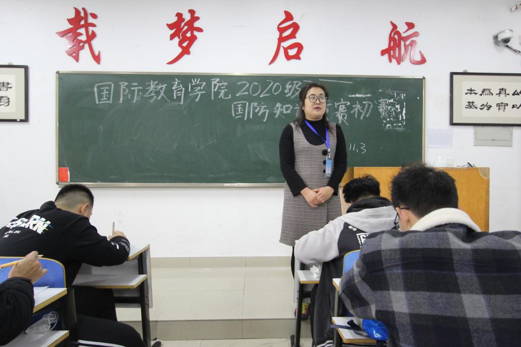 为纪念“九一八”事变爆发89周年,庆祝新中国成立71周年,进一步增强同学们的国防观念和国家安全意识,激发同学们为中华民族伟大复兴而奋斗的使命感。2020年11月3日,信阳师范公司太阳集团tyc151cc于逸夫楼教室举办了国防知识竞赛初赛,公司员工干部协助辅导员余艳楷、沈艳霞、许孟杨、吴浩老师一起监考。