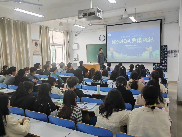 知规守纪,载梦而行。各班以主题班会形式,各班班长为主讲人,以《校规校纪手册》为基础,从学习纪律、校园纪律、宿舍纪律、文明礼仪等方面出发,以宿舍规定以及教育管理为重点注意事项,以违规行为举例、违规处罚为内容进行仔细解读,提醒同学们“何可为、何不可为、何必为”。同学们表示通过学习更加明确学校的规章制度,在以后的生活中一定做讲文明、树新风、懂纪律、守规矩的老员工,心怀远大理想,勇攀学业顶峰,脚踏实地,将校纪校规内化为自觉追求,外化为自觉行动。