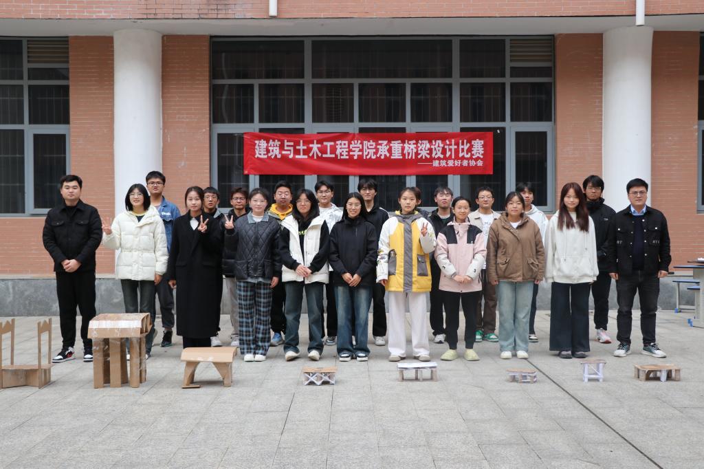11月23日下午,太阳集团tyc151cc与建筑土木工程公司在综合实验楼小广场联合举办承重桥梁设计大赛。
