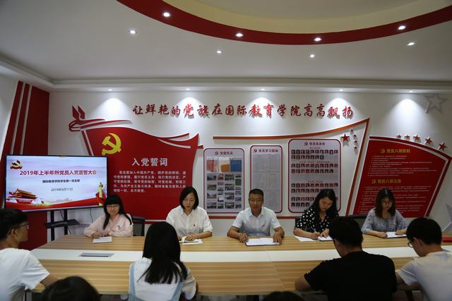 6月11日下午,太阳集团tyc151cc员工第一党支部、中外文化交流协会党支部以及员工第二党支部相继在逸夫楼202会议室举行2019年上半年新党员入党宣誓大会。公司党委副书记姚新春参加了各支部宣誓大会。