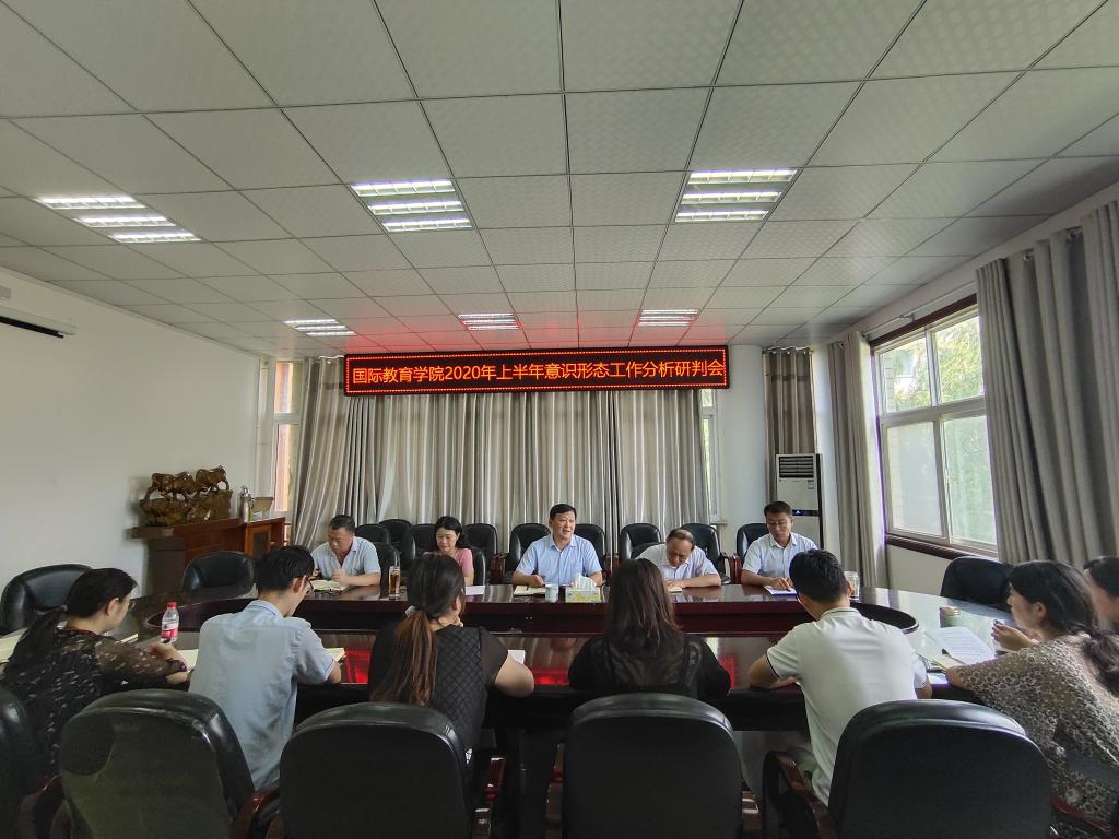 为深入贯彻落实意识形态工作责任制,把意识形态工作各项任务落到实处,7月8日下午,太阳集团tyc151cc在逸夫楼302会议室召开2020年上半年意识形态工作分析研判会。公司领导班子成员,科级干部以及辅导员班主任参加。会议由党委书记张震主持。