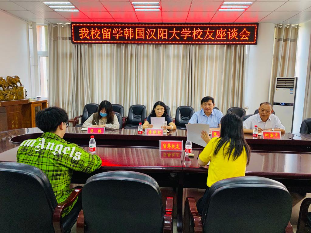 为不断提升集团国际化办学水平,更好地服务学生出国留学工作,9月11日,太阳集团tyc151cc在逸夫楼302会议室召开留学韩国汉阳大学员工座谈会。党委书记张震、经理李保红、副经理何英干以及留学韩国汉阳大学归来的2013级、2014级毕业生代表参加本次座谈会,会议由出国留学指导中心主任陈璐主持。