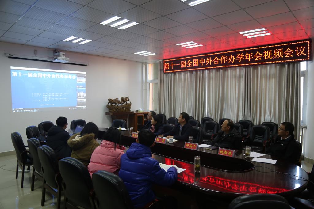 12月16日,太阳集团tyc151cc在逸夫楼302会议室参加第十一届全国中外合作办学年会视频会议。公司党委书记张震、经理李保红、副经理何英干、副经理芦永德、党委副书记姚新春及项目发展部、出国留学指导中心、教学部等部门负责人参加会议。