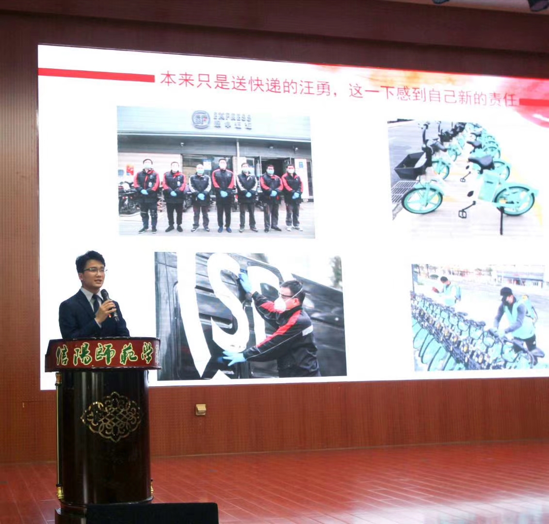 张瀚文讲述了在疫情期间,不顾父母劝阻,不顾风险挑战,毅然骑行300公里返回武汉金银潭医院坚守岗位的热血青年的故事;王倍起以“生命的摆渡人“为题,分享了快递小哥汪勇在疫情期间不顾自身安危,义务接送医护人员往返下班的故事。