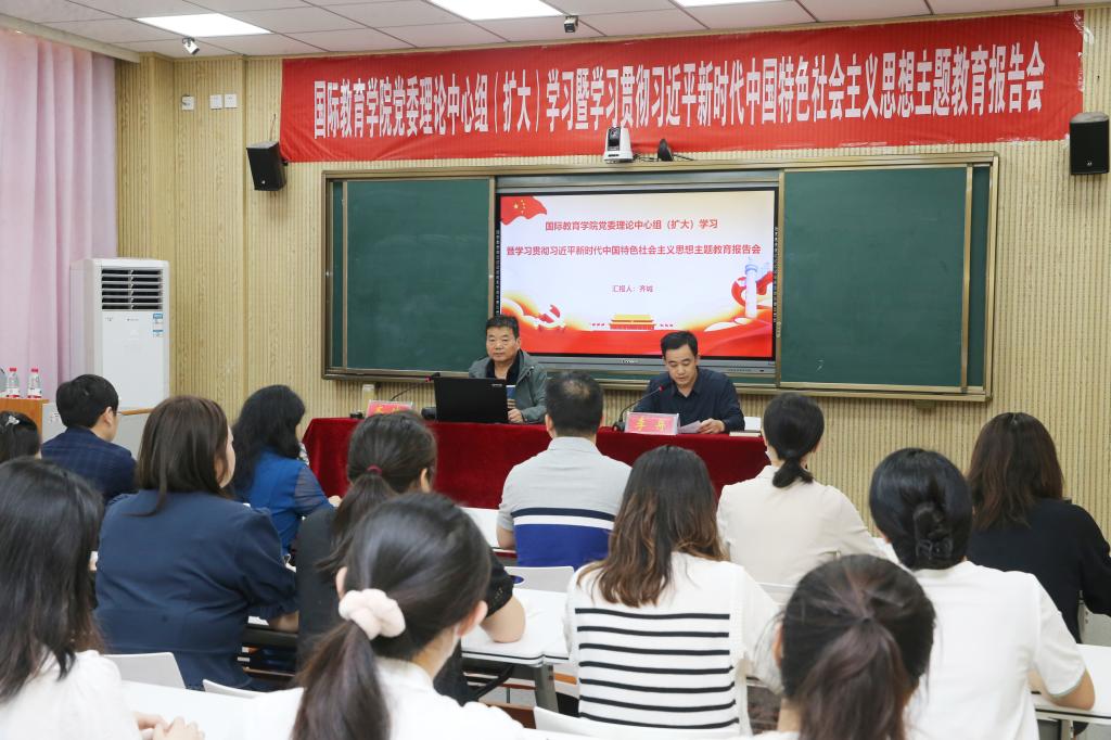 6月6日下午,太阳集团tyc151cc在逸夫楼201召开党委理论学习中心组(扩大)学习暨学习贯彻习近平新时代中国特色社会主义思想主题教育报告会,特邀信阳师范公司原副董事长、中国管理科学研究院特聘研究员齐城作学习贯彻习近平新时代中国特色社会主义思想主题教育专题辅导报告。公司班子成员、全体科级干部、语言课教师、专职辅导员和员工党员参加会议。公司党委书记李舟主持会议。