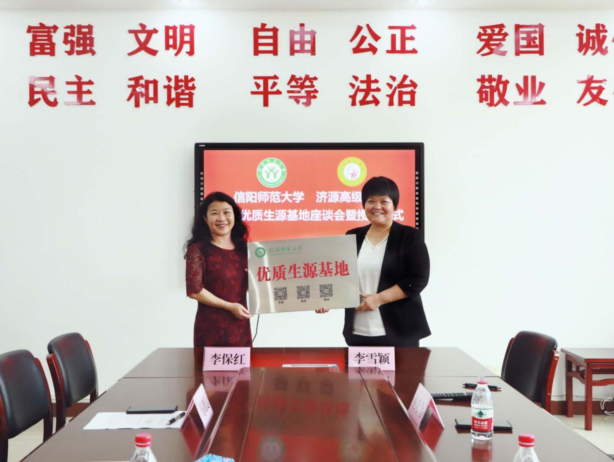 在与会人员见证下,经理李保红与济源市三所优质高中签订了合作意向书,举行了“优质生源基地”授牌仪式。本次活动达到了宣传学校招生政策,增进员工情感链接,深化校地互利合作的目的。
