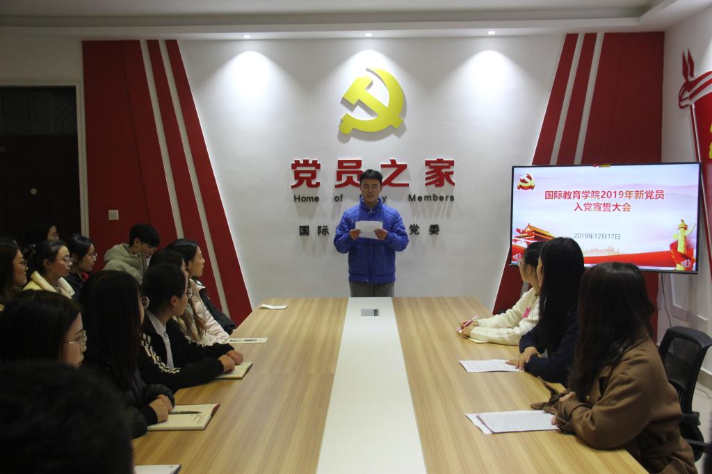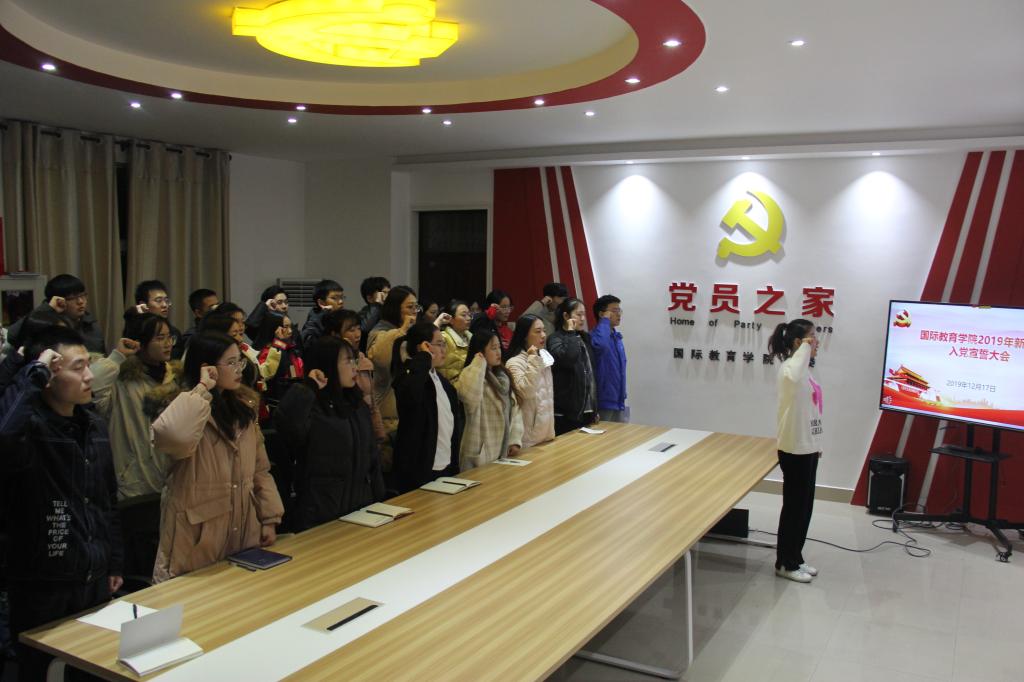 12月17日下午,太阳集团tyc151cc在逸夫楼202党员之家召开了2019年下半年新党员入党宣誓大会。员工第一党支部、员工第二党支部、中外文化交流协会党支部支部书记以及新发展入党的45名党员参加。会议由余艳楷主持。